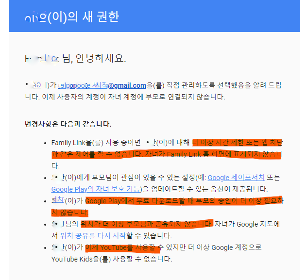 만 14세가 지났을때 구글에서는 지메일(gmail.com)로 계정관리 방법에 대한 이메일을 보냈었다.