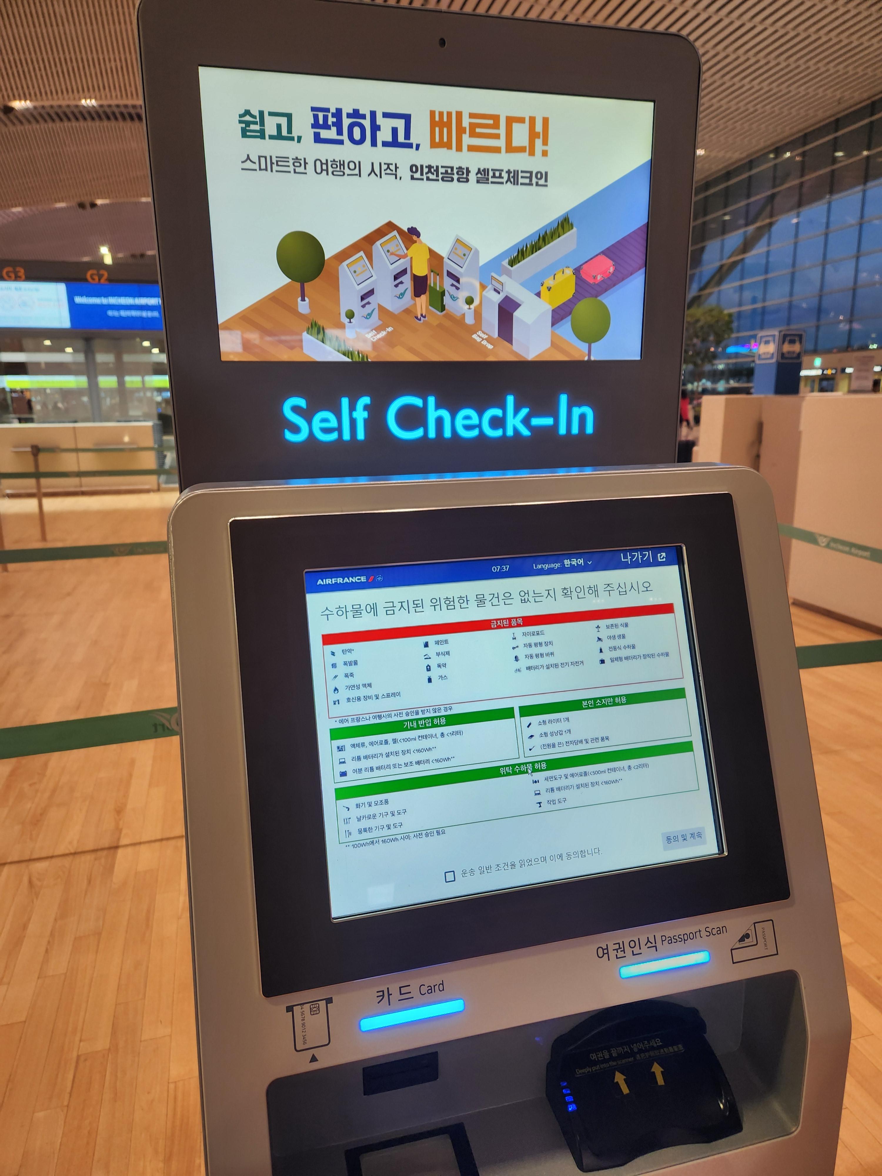 셀프 체크인 기기에서는 수하물 태그가 출력되지 않는다는 점은 알아두자(위에 적었듯이)