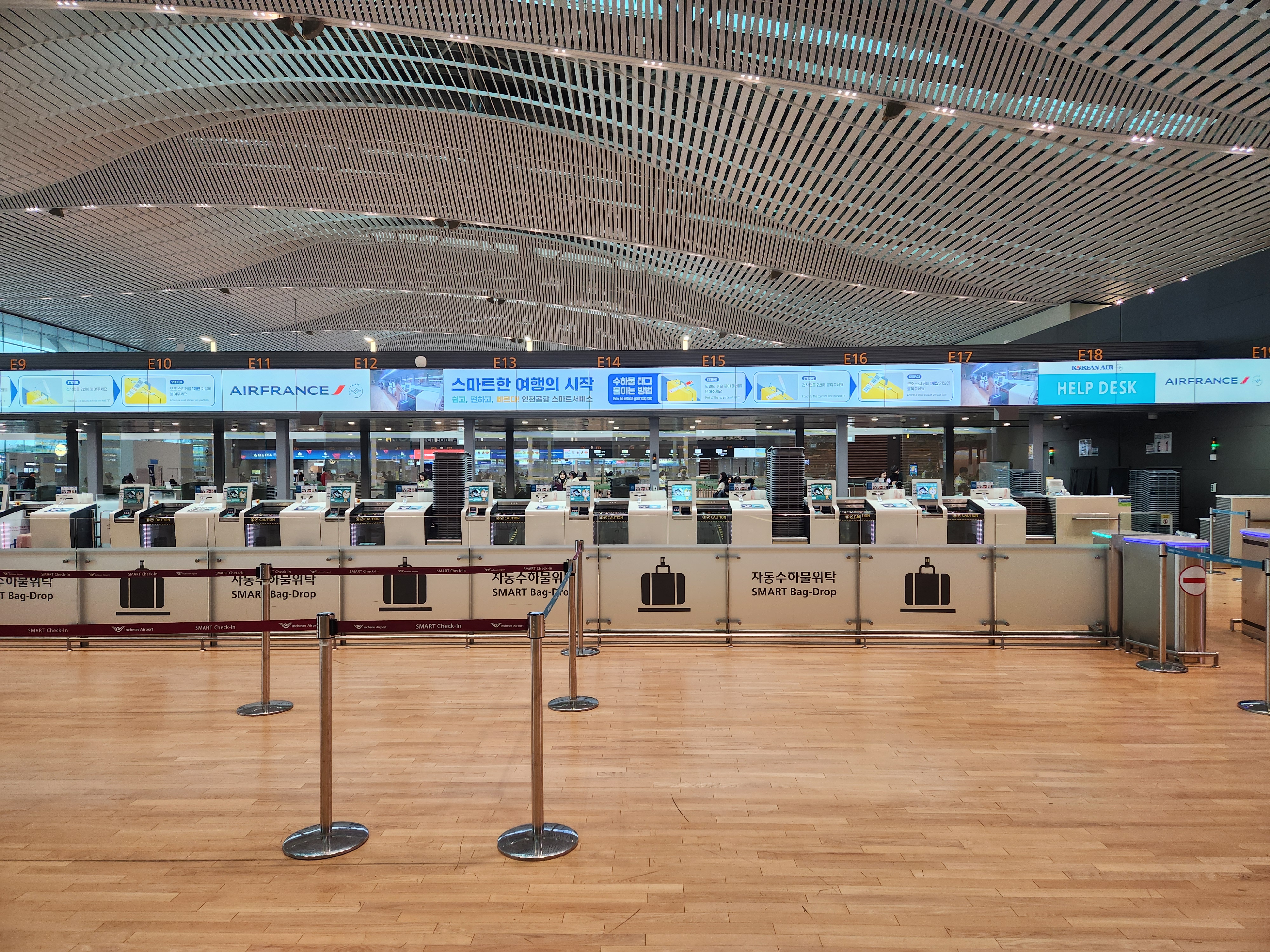 에어프랑스는 수화물 카운터 E(E01 ~E17)만 쓰는 반면 대한항공은 D,E 전체를 사용했다.