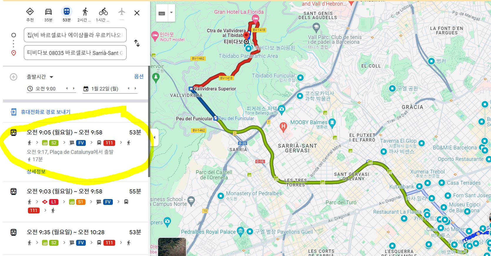 우리는 바르셀로나 카드가 있으니 티비다보를 올라갈 수 있는 대중교통을 찾아봤다.