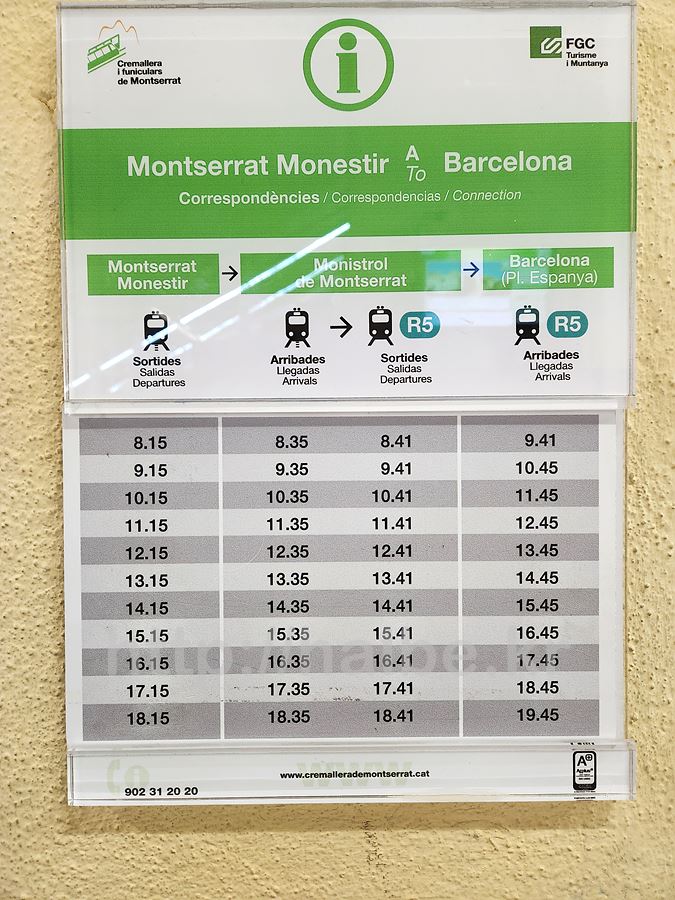 몬세라트에서 바르셀로나로 돌아가는 기차는 매 1시간마다 있다.