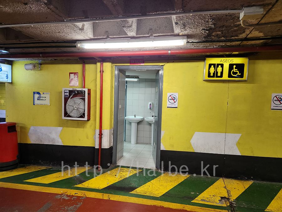 아래의 거리 지하가 모두 주차장이었다. 화장실 표시가 있어 내려가봤더니 화장실 발견. 시원하게 볼일 보고 나옴.