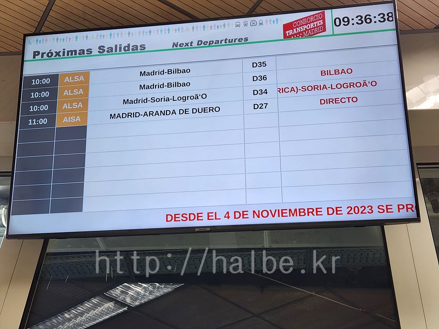 빌바오로 출발하는 알사(ALSA) 버스 터미널