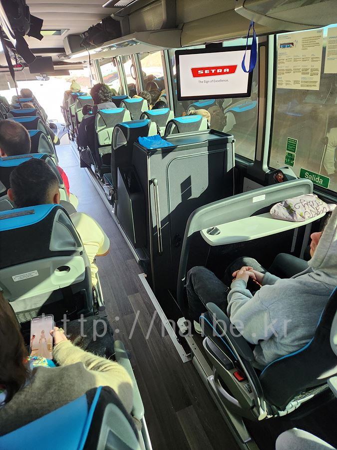 버스는 나름 편하고 넓고 좋았다. 위의 사진이 버스 안인데 저기 내려가는 계단 옆에 있는 문을 열면 화장실이다.