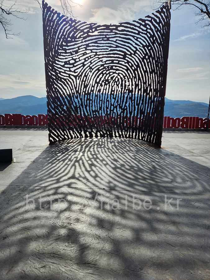공원 담장이 빨간색으로 Bilbao 와 Bilbo가 연결되어 있다. Bilbo는 똑같이 빌바오를 뜻하는 바스크어이다.^^