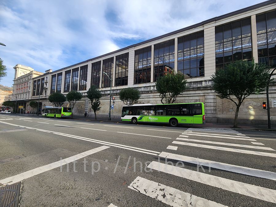위사진. 빌바오 기차역이다. 뒷편이 네르비온 강이 흐르고 강 건너편에 구시가지가 있다.