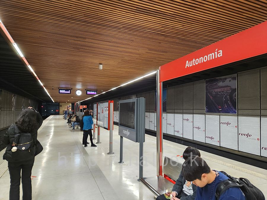 Autonomia 기차역에서 타고 Estación de tren Portugalete 기차역에서 내린다.