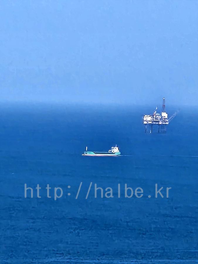 이 사진은 올라오다가 둘째 아이가 발견한 원유 시추시설. 아주 먼 곳에 배는 아닌데 뭔가 움직이지 않는 것이 보인다고 물어보길래 폰 카메라로 30배를 당겨서 봤는데 세상에나. 원유 시추시설이 보이는 것이었다.