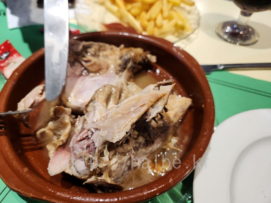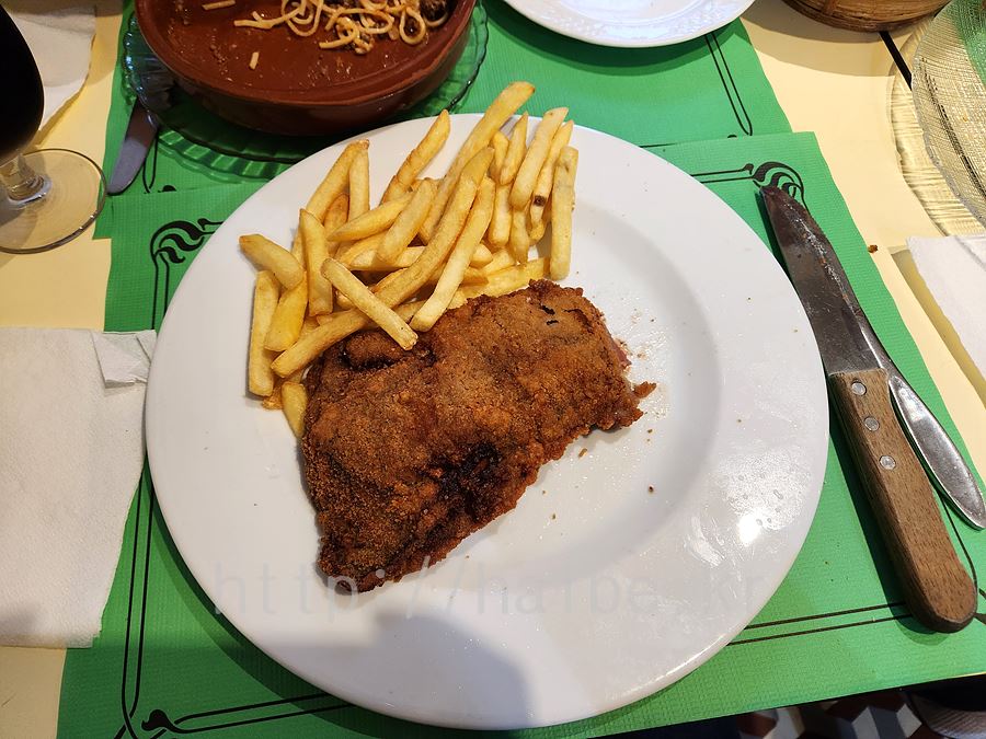 식당 이름은 Casa Balbina 메뉴를 보고 카쵸포(Cachopo)와 스프를 시켰다. 피자를 먹으려고 했는데 시간이 늦어 안된다고 했던 것으로 기억. 카쵸포는 얇은 송아지 고기 사이에 하몽과 치즈를 끼워 넣고 튀긴 음식인데 아스투리아스,칸타브리아 지방에서 유명하다고 알려져 있다.