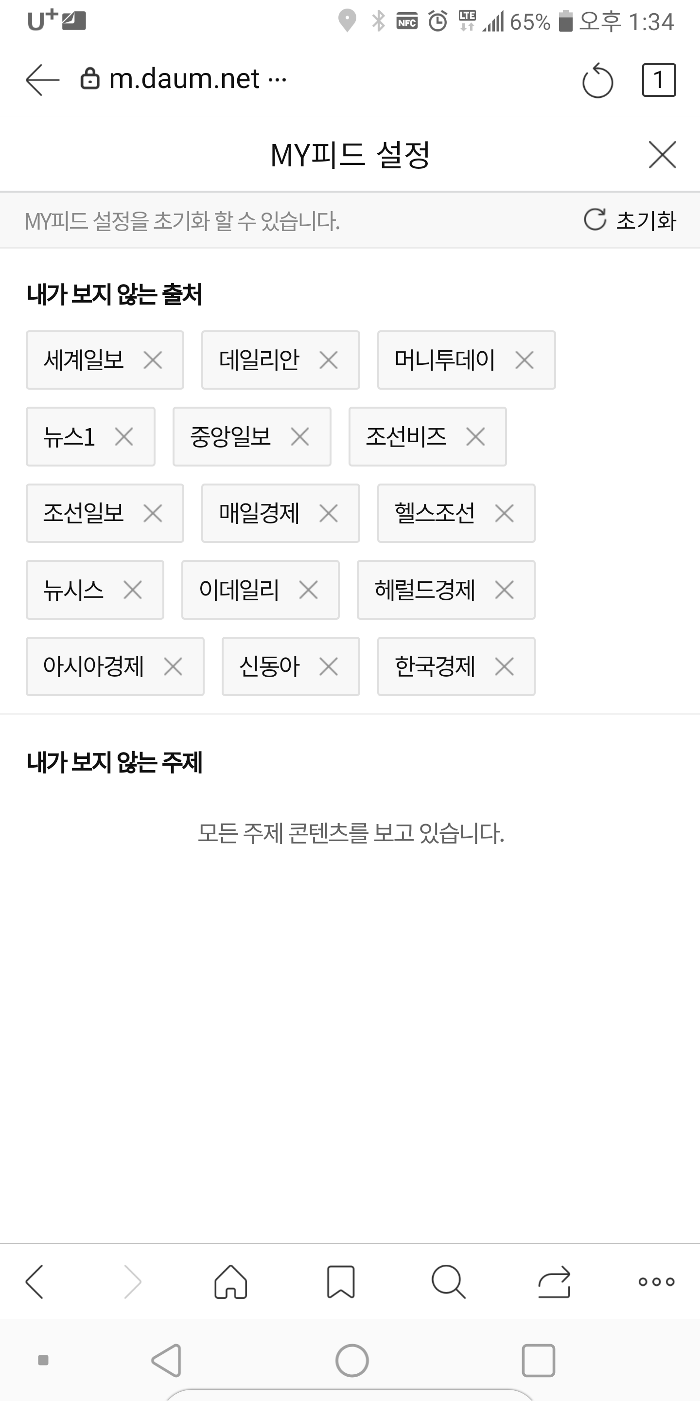 위와 같이 구독하고 싶지 않은 언론사를 설정할 수 있다. 나는 조중동을 비롯하여 경제신문들은 모두 구독에서 빼버렸다.