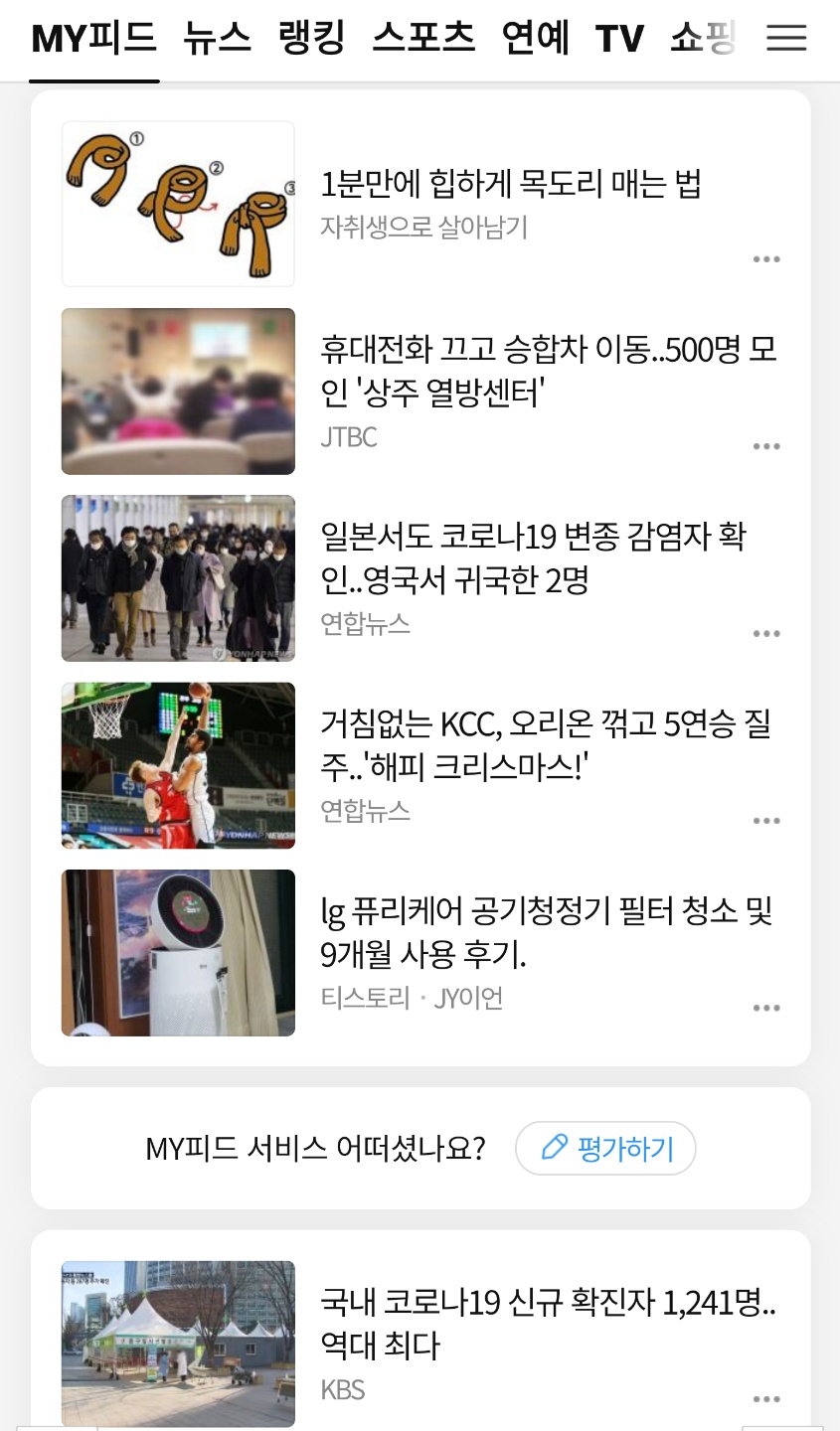 검색해 보니 "MY피드"메뉴가 2019년 11월에 생긴 것으로 나온다. MY피드를 이용해 특정 언론사를 구독하지 않는 기능을 사용할 수 있다.