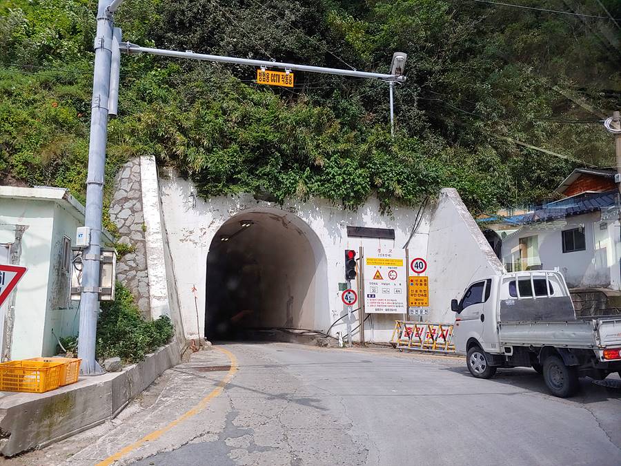 아래는 국내 유일(?) 신호등으로 운영되는 1차로 터널인 남양 터널이다. 이때 갔을 때만 해도 신호등으로 운영 중이었는데 올해 2022년 3월 터널을 바로 옆에 하나 더 뚫어 2개의 터널이 되어 신호등은 이제 없어졌다고 한다. 터널에 신호등이 있는 것이 외지인들에게는 익숙하지 않아 그만큼 사고가 많았었기 때문이라고 한다.